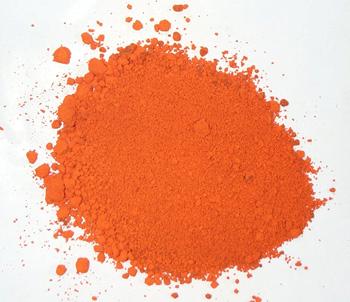 为橙红色或橙黄色的粉末,光泽暗淡,不透明,质重,用手指搓揉,先有沙性触及,后觉细腻,能使手指染成橙黄色。有金属性辛味。以色橙红,细腻光滑,无粗粒,见水不成疙瘩者为佳。不溶于水和酒精,能溶于硝酸,溶于盐酸则放出氯气。炽热之,放出氧气,一部分变为氧化铅。